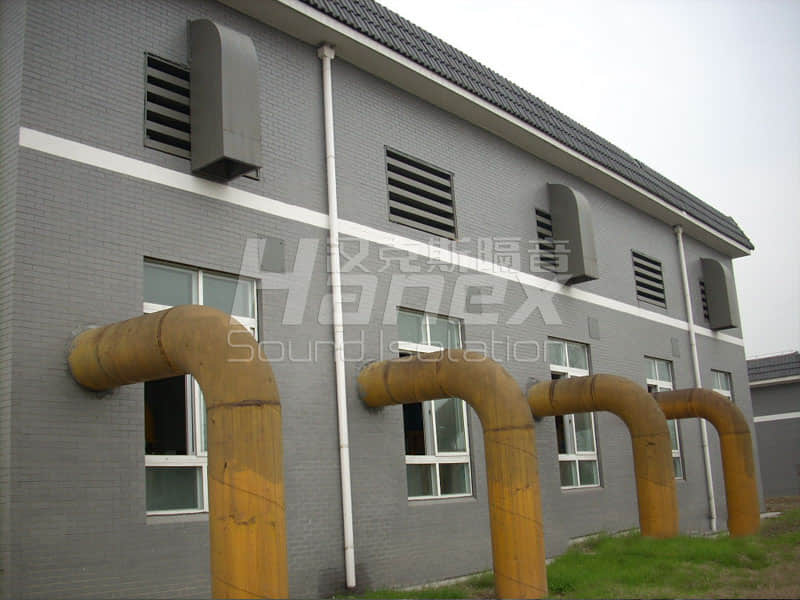 富陽市靈橋綜合污水處理廠工程師富陽市江南片的三個集中污水處理廠之一,中占地面積15.58公頃。廠內(nèi)安裝了4臺功率為315KW的羅茨鼓風(fēng)機(jī),運(yùn)行時車間高噪聲值達(dá)107.14dB(A),廠界噪聲超標(biāo)4-5dB(A),經(jīng)漢克斯隔音治理后,車間及廠界噪聲均控制在規(guī)定范圍內(nèi)。
