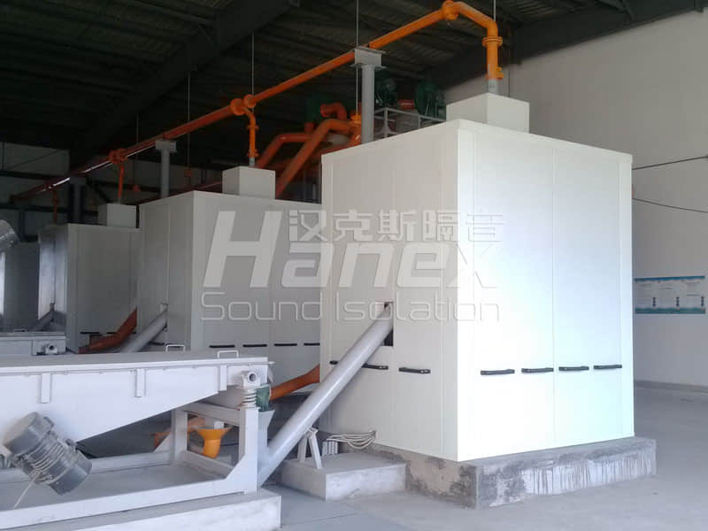 廠區(qū)車間內(nèi)4臺破碎機(jī)運(yùn)行時(shí)噪聲量達(dá)到120分貝,影響廠區(qū)環(huán)境和工人工作。漢克斯對每臺破碎機(jī)單獨(dú)設(shè)置隔聲罩后,距離設(shè)備一米處測得噪聲值為80分貝,低于國家衛(wèi)生標(biāo)準(zhǔn),符合降噪要求。隔聲罩內(nèi)具有通風(fēng)散熱照明功能,能夠保證內(nèi)部設(shè)備的正常運(yùn)行。