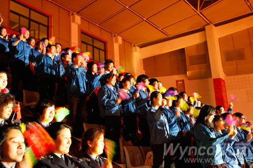 瀏覽量:5638 4月25日晚,由80名新安化工員工組成的合唱團,身穿新安藍工作服,在體育場內參加建德市萬名職工唱紅歌的活動,放聲高唱《東方紅》、《山丹丹花開紅艷艷》和《歌唱祖國》等紅色歌曲,以此來慶祝“五一”勞動節(jié)和即將到來的建黨90周年大慶。在活動中,公司員工何亮成為晚會主持人之一,與其他五名主持人一起為全市勞動模范和職工代表主持了一場精彩的文藝演出。