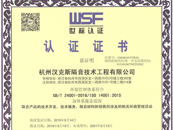 環(huán)境管理體系證書