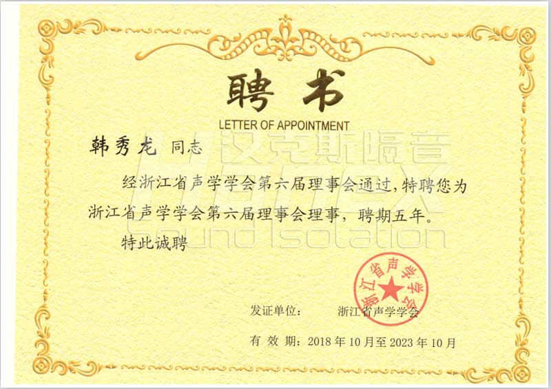 聲學(xué)學(xué)會理事聘書